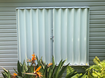 - Privacy – In the closed position the accordion shutter restricts ability to see into the opening.
